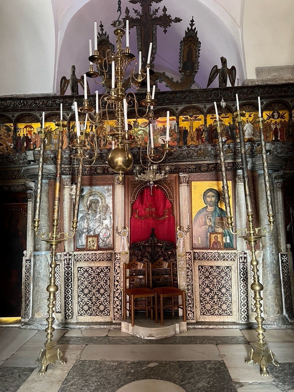 Blick in eine byzantinische Kirche bei Pyros auf Santorini