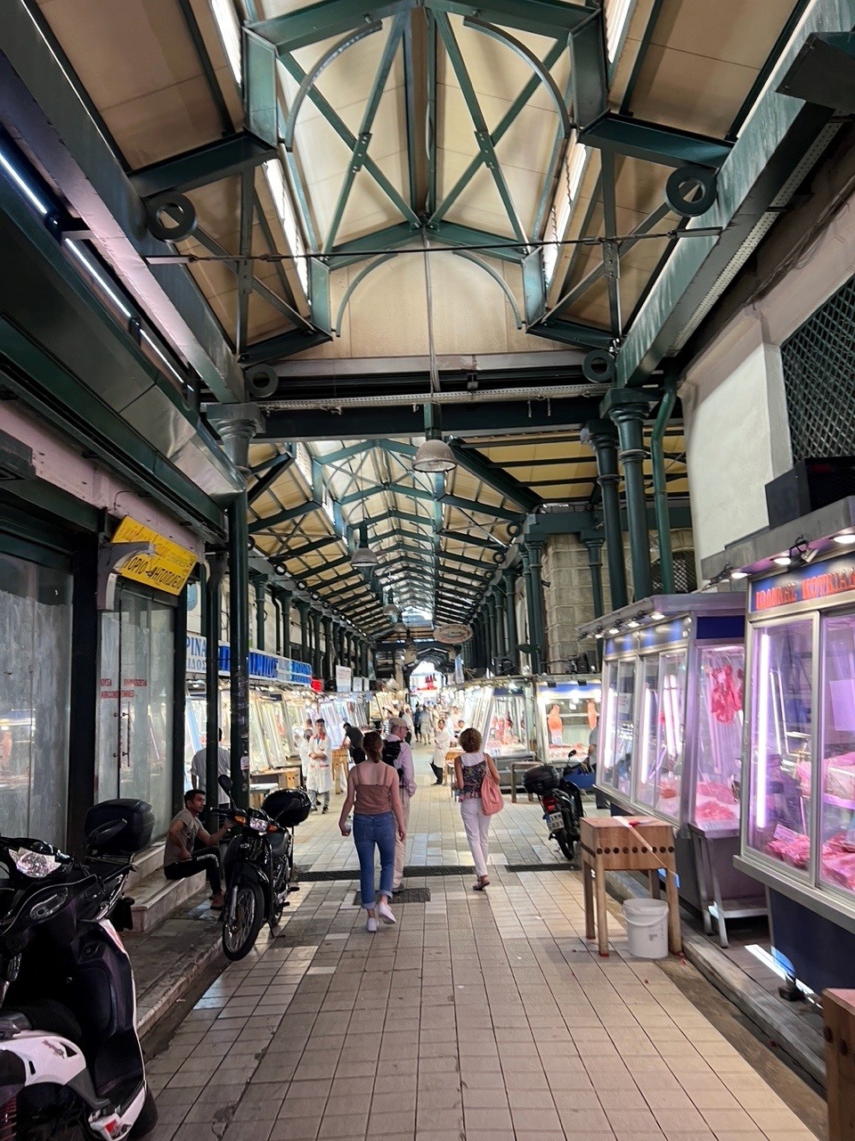 Dann ging es durch die Markthallen, wo es in Vitrinen frisch gehaltenes Fleisch gab.
