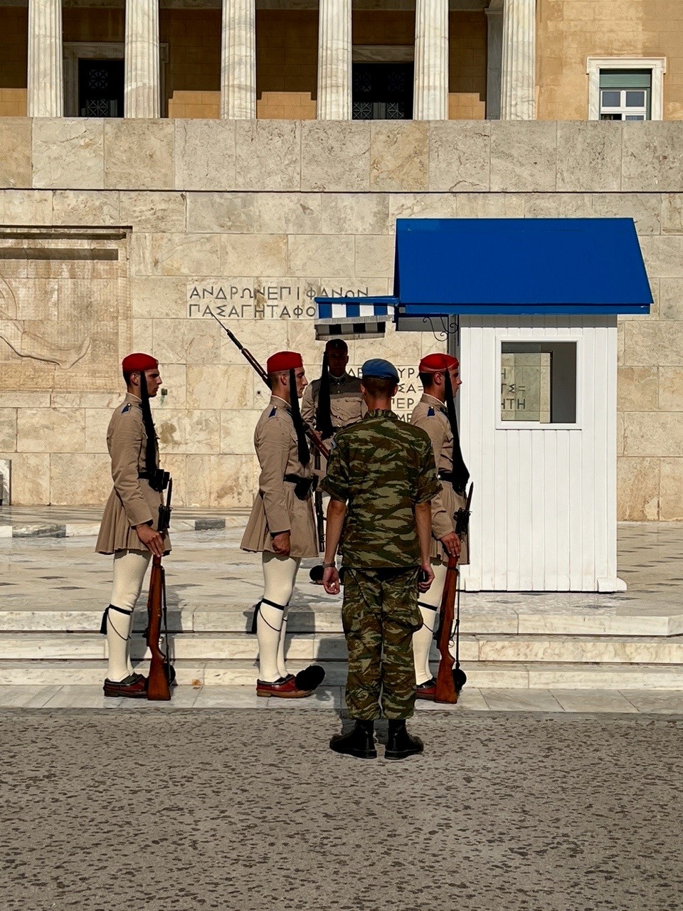 Auch der Wachwechsel vor dem Parlament und dem Hotel Grande Bretagne, wo wir uns bei einem Frappé erholten, ist zu empfehlen.